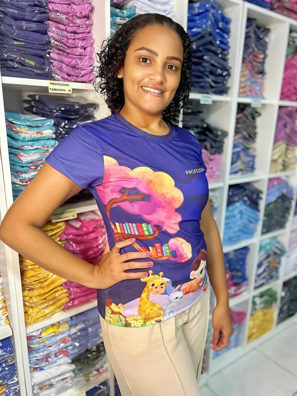 👕 O tecido que utilizamos em nossas T-shirts é o Flamê New Trend.
