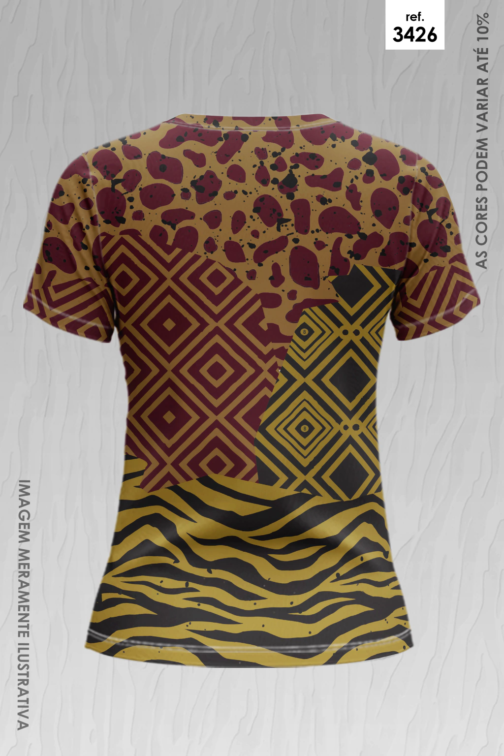 Sublimação total: é um processo de transferência de qualquer imagem diretamente para o tecido, isso possibilita infinitas opções de cores e estampas, sendo possível deixar a peça sempre bem colorida e viva.
